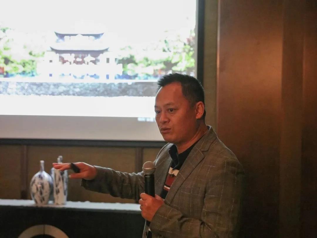 ▲陳勝洪董事長、吳秋霞副總裁介紹人文園林經典案例并與考察團團員深入探討交流