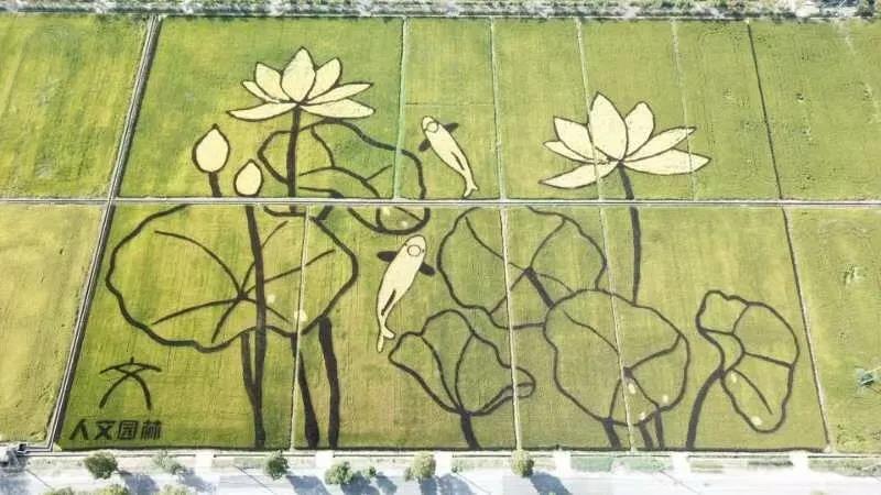稻田畫的制作由人文園林設計院、人與文化子公司、文旅事業部、工程項目部等多部門配合,由公司子公司——浙江苗景生態園藝有限公司團隊完成種植、放線及養護,是人文園林大地藝術創作的一種新型表現方式,是踐行生態農業與園藝技術的完美結合,是農田景觀化,農田園林化的創新嘗試。