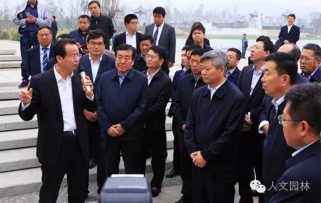 2016年10月20日,陜西省委常委、延安市委書記徐新榮(右三)帶領延安市各區縣黨政主要負責同志和市級有關部門主要負責同志到國家文史公園參觀考察,渭南市委副書記王愛民,市委秘書長楊林和韓城市委書記、市人大常委會主任李智遠(左三),市委副書記、市人大黨組書記冀會康(左二),市政協黨組成員、副主席張宏哲,市旅委主任雷勤(右二)等韓城市領導,以及浙江人文園林有限公司副總經理洪利民(左一)全程陪同。